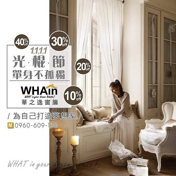 《華之逸窗簾》 光棍節 單身不孤獨 1+1+1+1活動